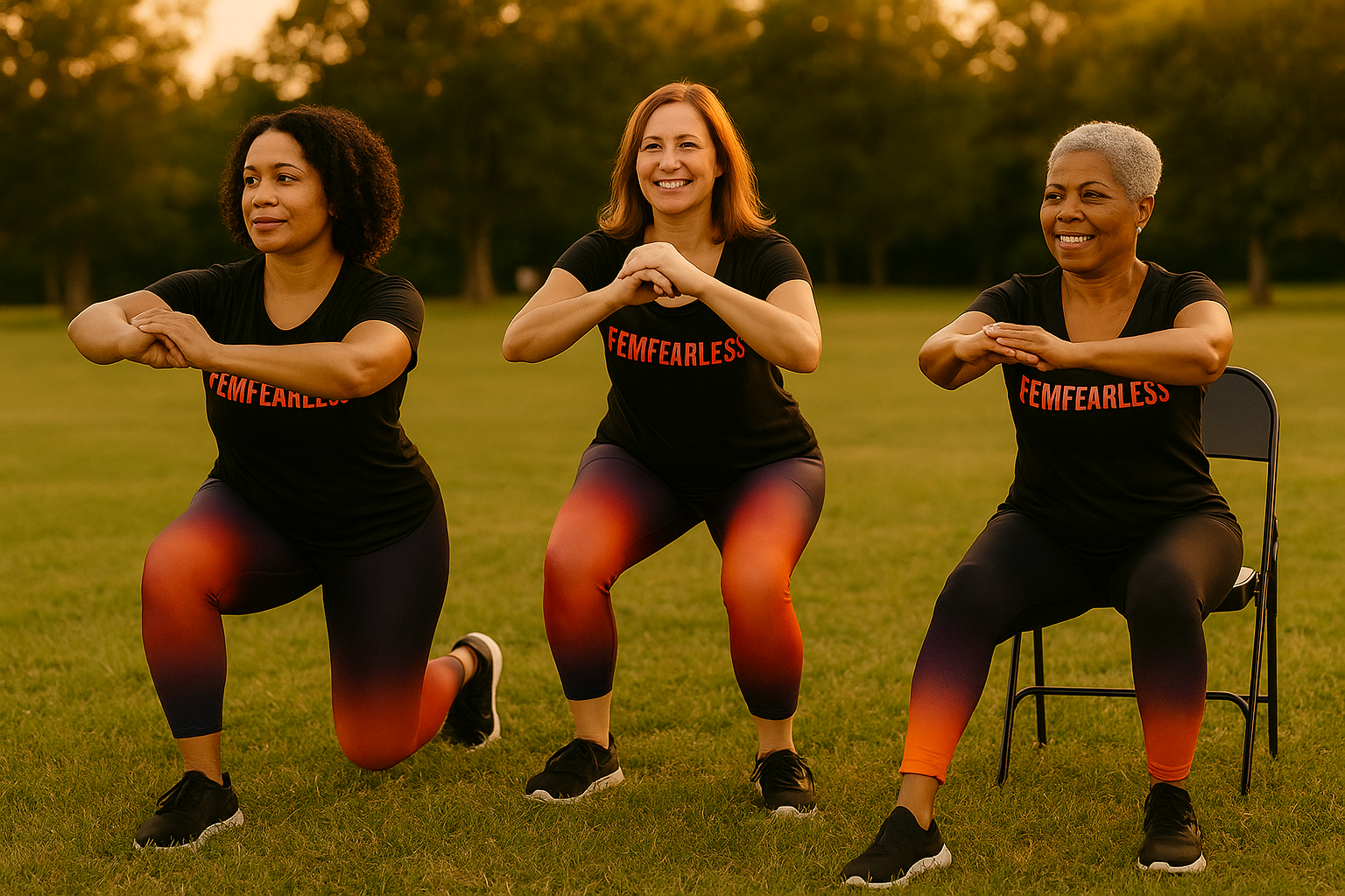 FemFearless brings joy-based wellness to your community. Every session blends rhythm, functional movement, and mobility so participants feel confident and connected—seated or standing.